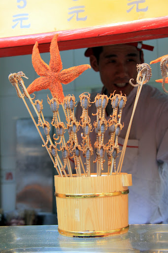 stands très visités de Wangfujing Snack Street où scorpions, araignées,