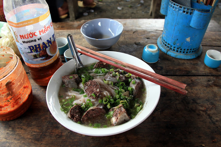 ... Les étals de fruits, légumes et diverses herbes... Les stands de Pho aux boudins...