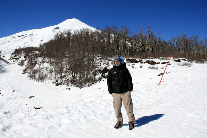 Nous profitons des jours ensoleillés pour arpenter les chemins de la région : se balader sur la neige du volcan Villarrica...